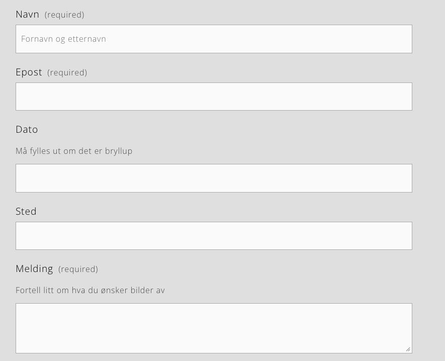 For forespørsler om fotografering, bruk kontaktskjemaet eller send meg en mail på .